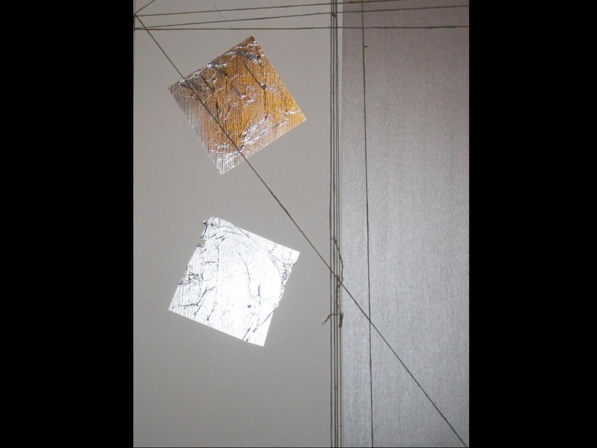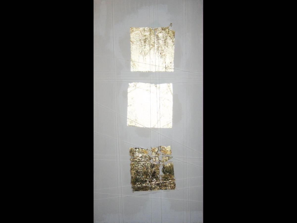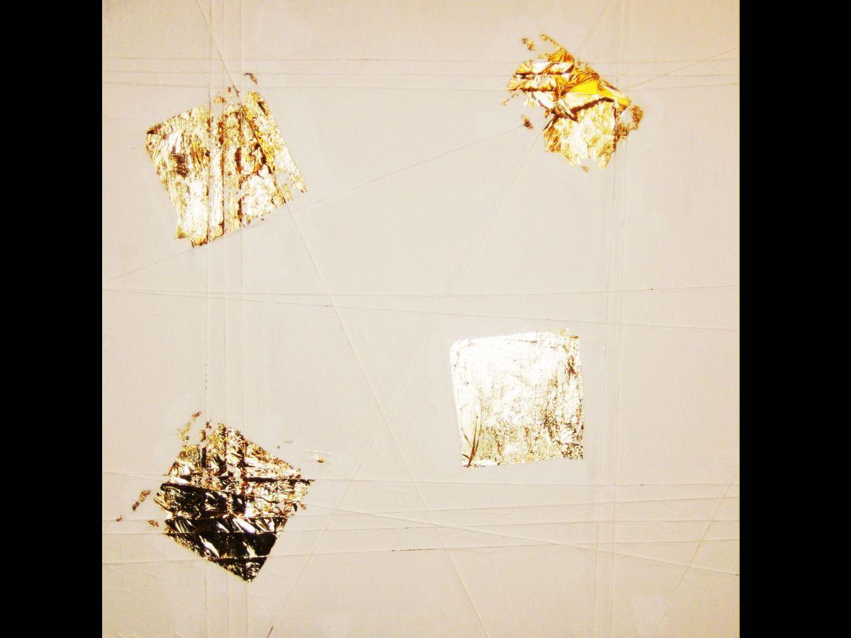 Tele d'arredo realizzate in cementite e acrilico con foglia oro zecchino 23 3/4 carati ed inserti in corda